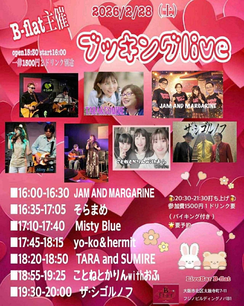 ◾️2026/2/28(土)⚫︎B-flat (東梅田)⚫︎Open 15:30 /Start 16:00⚫︎Charge ¥1,500+2Drink要